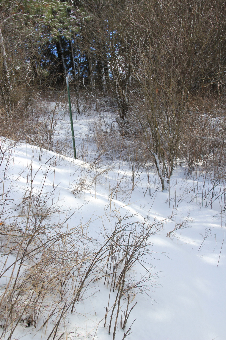 Trail filled ahead, almost to the switchback by the fence.