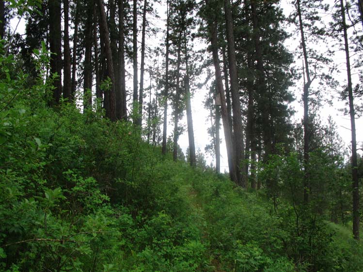 The trail starts back up, still on the slope above the county road.