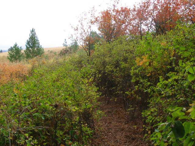 Out and through the brush.