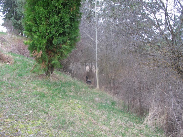 Down the trail beside the driveway to the bench.
