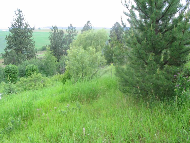 Still beside the field facing north. An Austrian Pine on the right (a tree I introduced to the area, non-native)